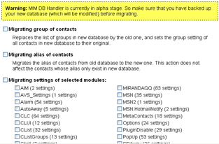 Miranda IM Database Migration Tool allows you to migrate list of groups, alias of contacts, and the settings of system from a old database to a new one.